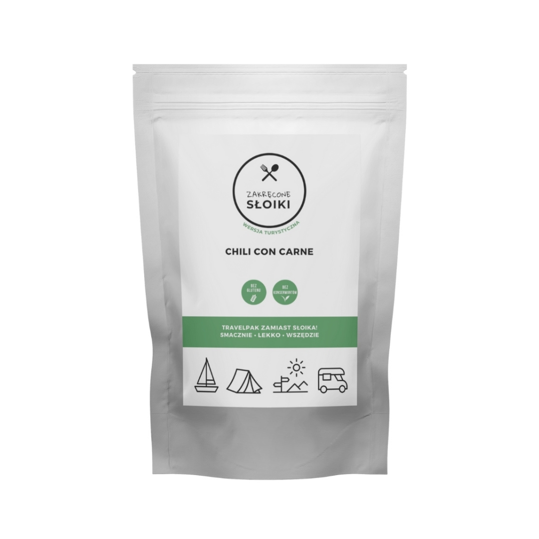 Składniki: mięso wołowe, pomidory, fasola czerwona, kukurydza, marchew, papryczka chilli, cebula czerwona, czosnek, pieprz cayenne, sól, pieprz